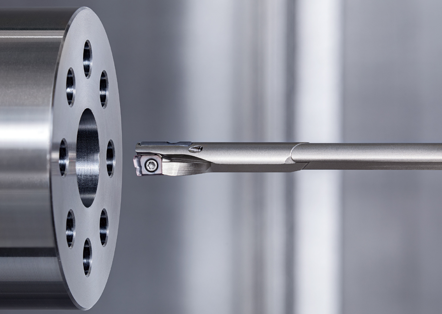 These integrated features enable stable and productive drilling of deep holes of small diameters in solid components, made mainly from steel (ISO P application group).