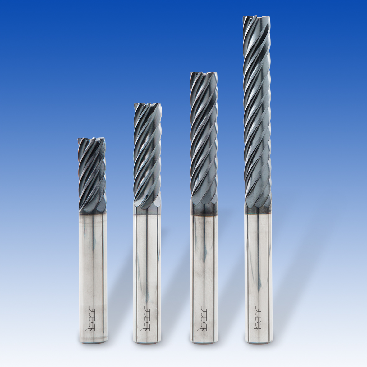 A família CHATTERFREE EC-E7/H7-CF é uma nova família de fresas de topo de carboneto sólido multicanal, que são destinadas especialmente para técnicas de fresagem trocoidal. O design geométrico da família inclui diferentes ângulos de hélice e passos angulares variáveis para melhorar o comportamento dinâmico. Essas fresas estão disponíveis em uma gama de razões de comprimento de corte para diâmetro (Fig. 1).