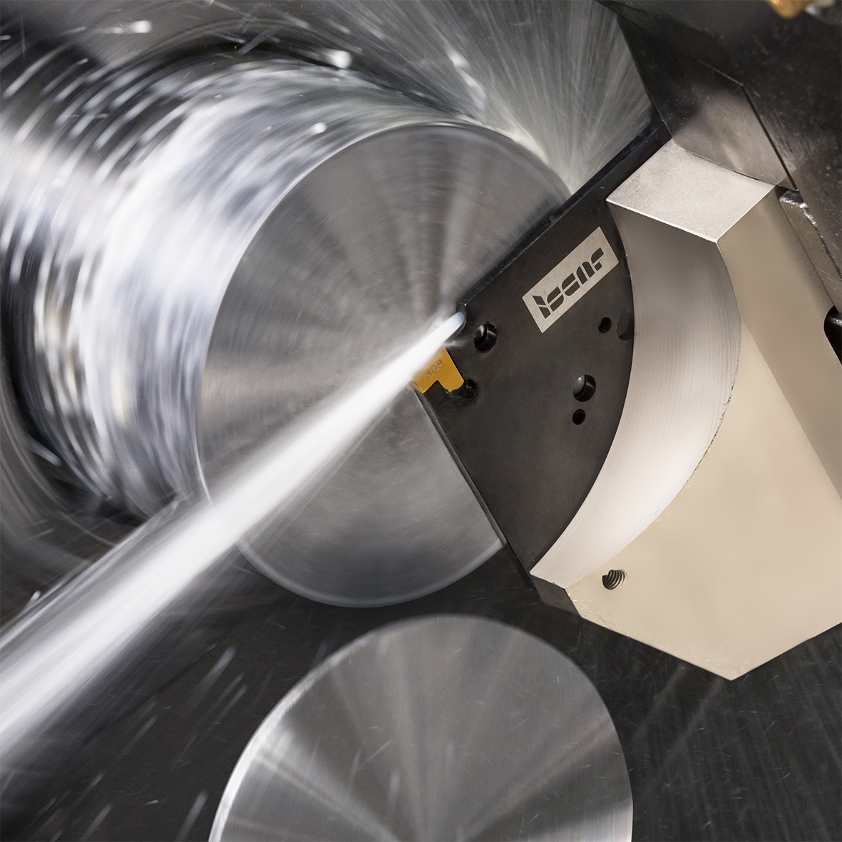 Pinpointed high pressure coolant (HPC) provides competitive advantages for better parting performance by decreasing temperatures at the cutting zone and by assuring excellent chip breaking, which substantially improves surface finish and prolongs tool life. In machining difficult-to-cut heat-resistant superalloys and austenitic stainless steel, HPC reduces or even eliminates the built-up edge phenomenon. High pressure coolant is highly advantageous in parting operations.